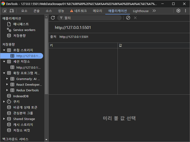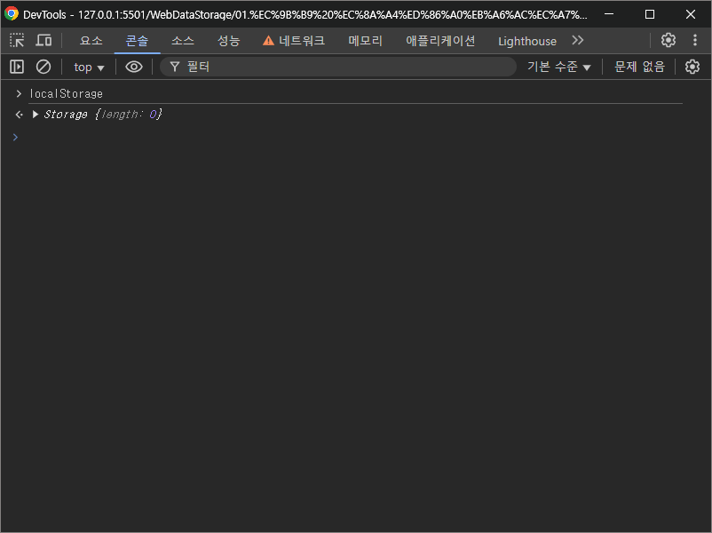 초반에 localStorage를 확인해보면 데이터가 저장되어있지 않는 것을 확인할 수 있다.