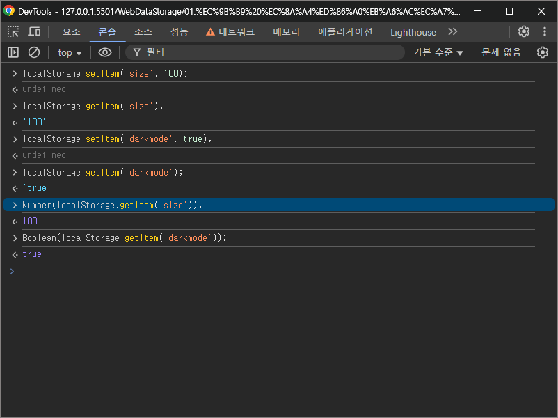 로컬 스토리지에 저장되는 데이터는 모두 문자열로 저장된다.