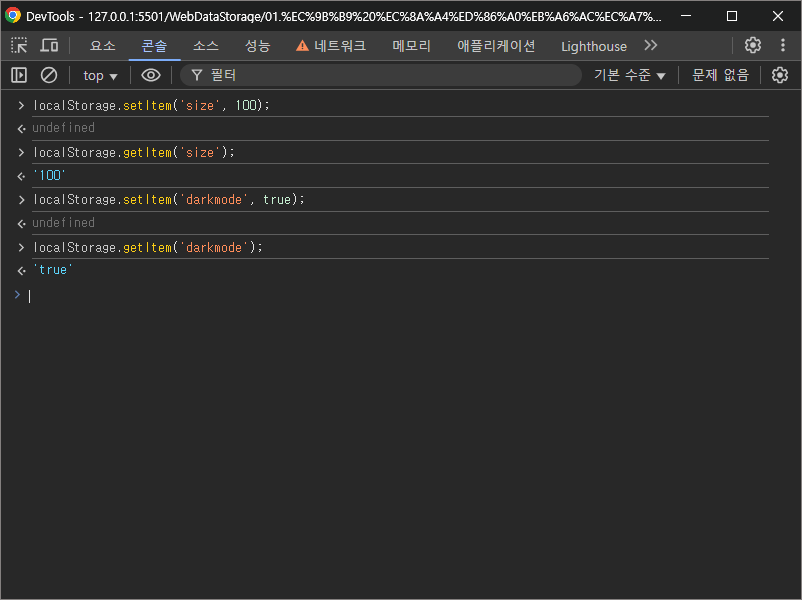 자바스크립트 코드를 사용해 웹 스토리지를 다루는 방법을 알아보자.