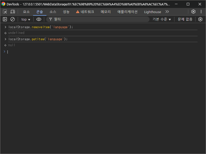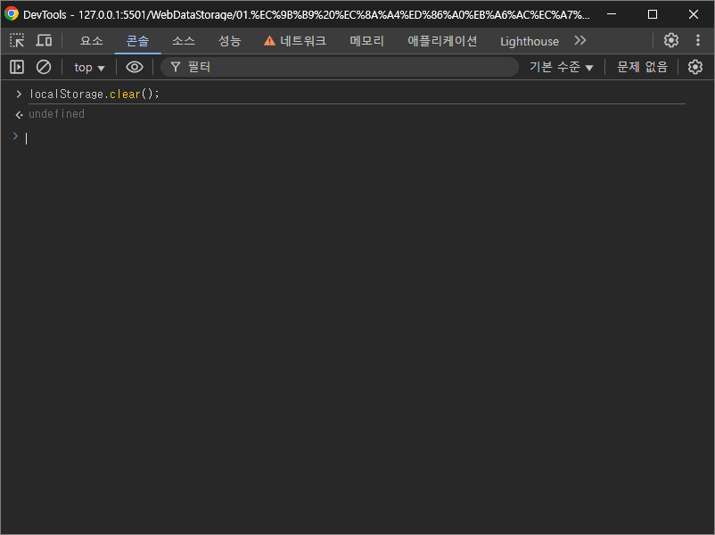 로컬 스토리지의 모든 데이터를 삭제하려면 clear() 메소드를 사용한다.