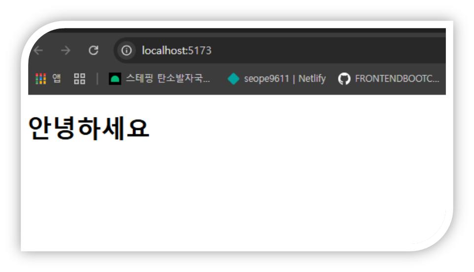 위와 같이 코드를 작성하여 Greeting 컴포넌트가 App에 포함되어 화면에 나타난다.