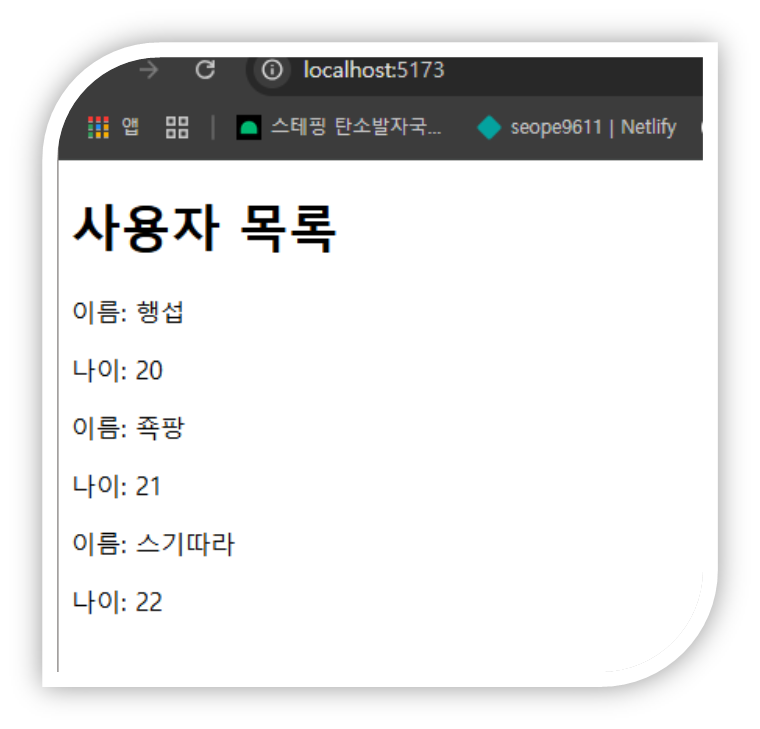 위와 같이 user 배열을 map()을 사용해 여러 개의 UserCard를 렌더링 할 수 있으며