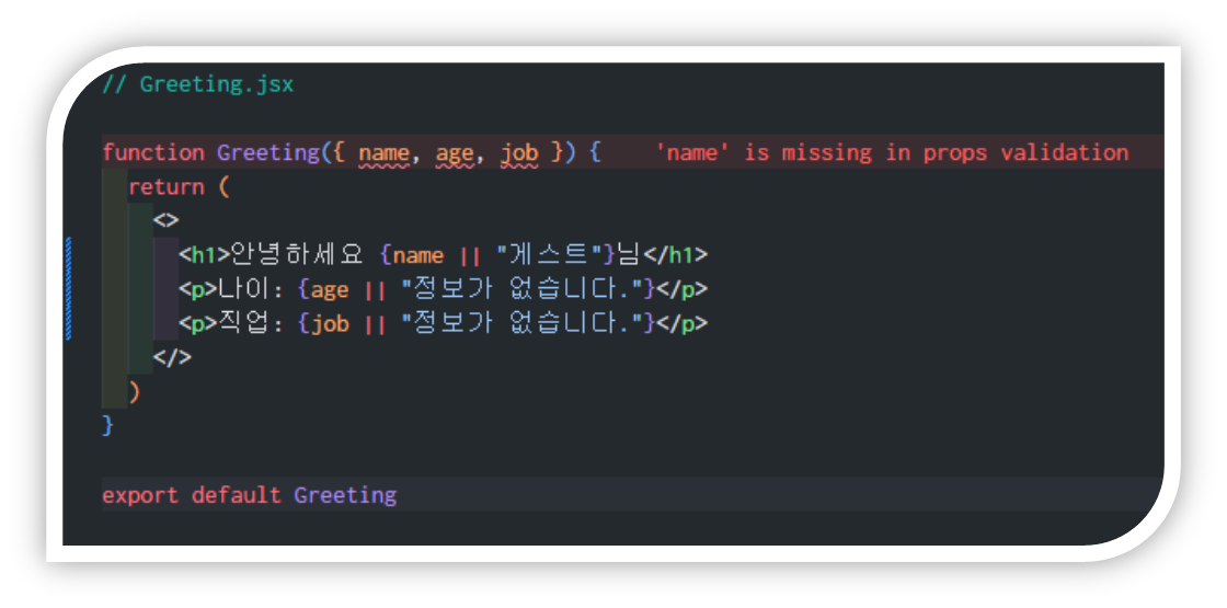 props를 전달하지 않았을 때, 다음과 같이 기본값을 설정한다.