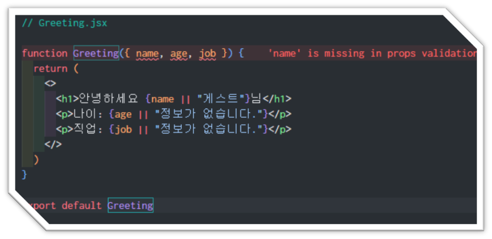 이렇게 같은 Greeting 컴포넌트를 여러번 사용해도 props를 통해 다른 값이 표시된다.