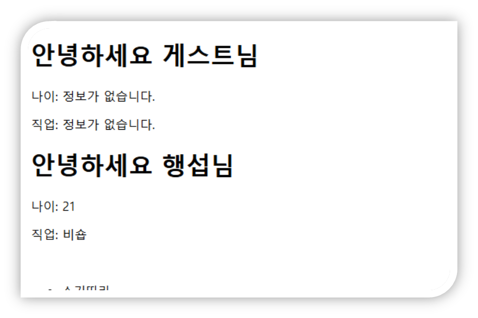 name이 전달되지 않으면 "게스트" 가 기본값으로 사용된다.
