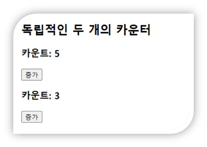 위 예제에서는 두 개의 카운터가 있지만 각각의 state는 독립적으로 관리되기 때문에