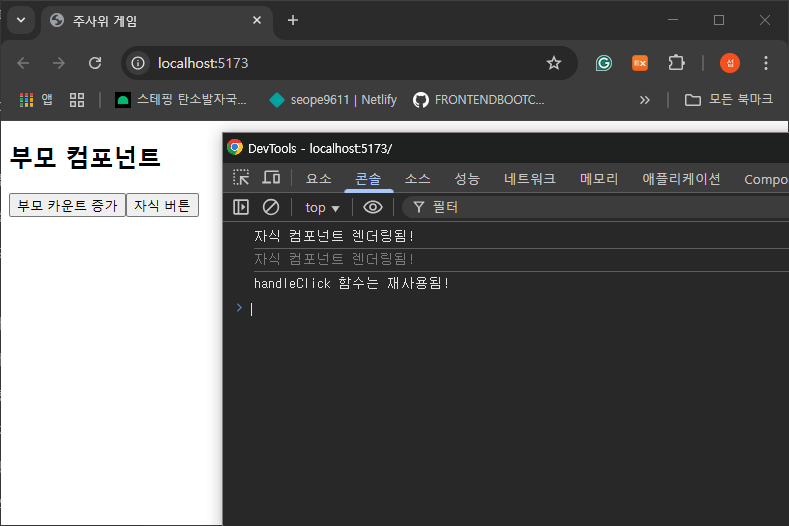 console.log("자식 컴포넌트 렌더링됨!");