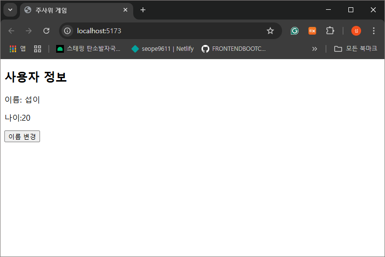 const [user, setUser] = useState({ name: "섭이", age: 20 })