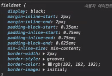 사용자 에이전트 스타일시트는 이러한 폼 요소들이 기본적인 스타일과 동작을