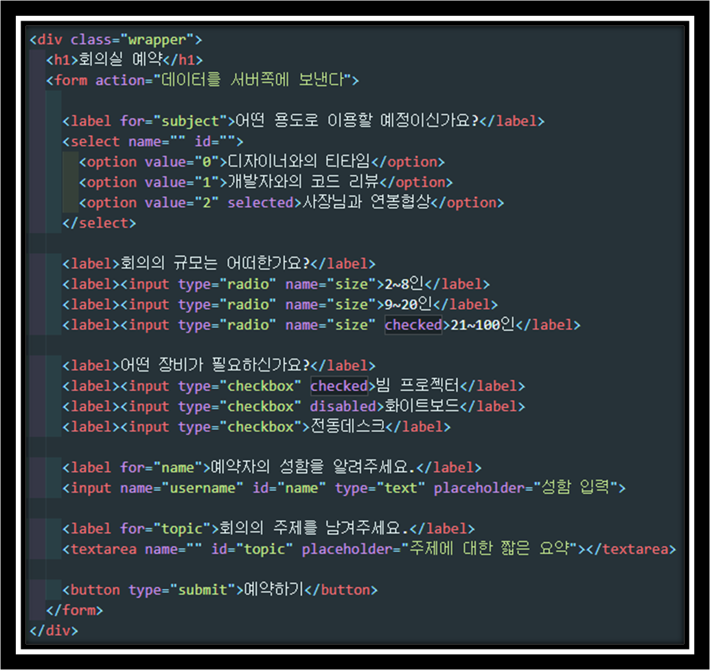 이 요소는 사용자가 입력한 데이터를 서버로 전송하기 위한 컨테이너 역할을 한다.