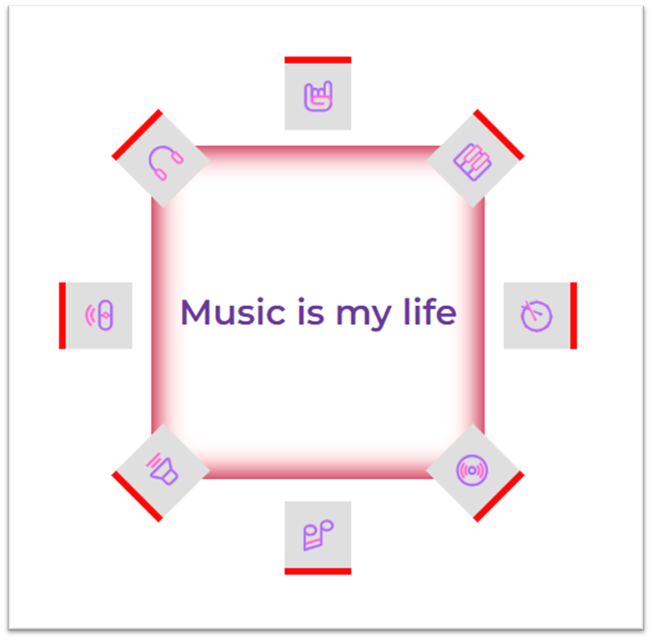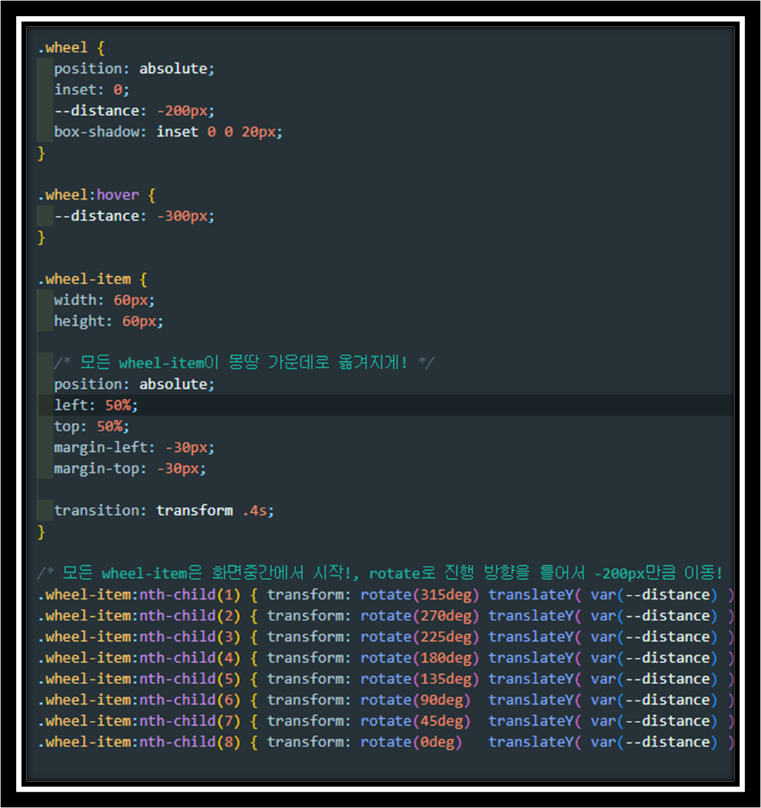 ▼ nth-child와 transform translate rotate를 적절히 사용하여 각 아이콘들의 위치를 조정해준다