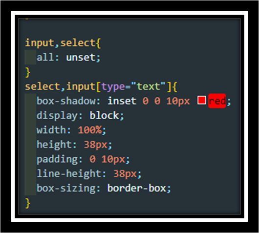 즉, input[type="text"] 요소에 지정된 모든 속성을 unset으로 초기화한 것이다.