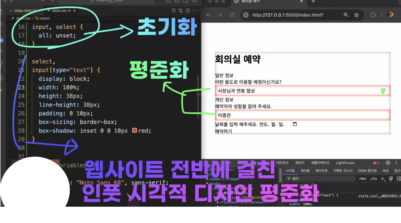 이에 폼 요소 초기화가 선행 되어야 안정적인 스타일링 작업이 될 수 있다.