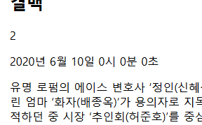 "content": "유명 로펌의 에이스 변호사 ‘정인(신혜선)’은 아빠의 장례식장에서 농약 막걸리 살인사건이 일어났음을 알게 된다. 치매에 걸린 엄마 ‘화자(배종옥)’가 용의자로 지목되고, 그녀의 결백을 주장하기 위해 고향으로 내려가 직접 변호를 맡는다. 사건을 추적하던 중 시장 ‘추인회(허준호)’를 중심으로 한 마을 사람들의 조직적 은폐와 거짓 진술 등 수상한 정황을 포착한 ‘정인’. 그날의 기억을 모두 잃은 ‘화자’의 결백을 입증하기 위해 모든 사람들과 맞서기 시작하는데…! 파헤칠수록 커지는 의혹, 과연 진실은 무엇인가?",