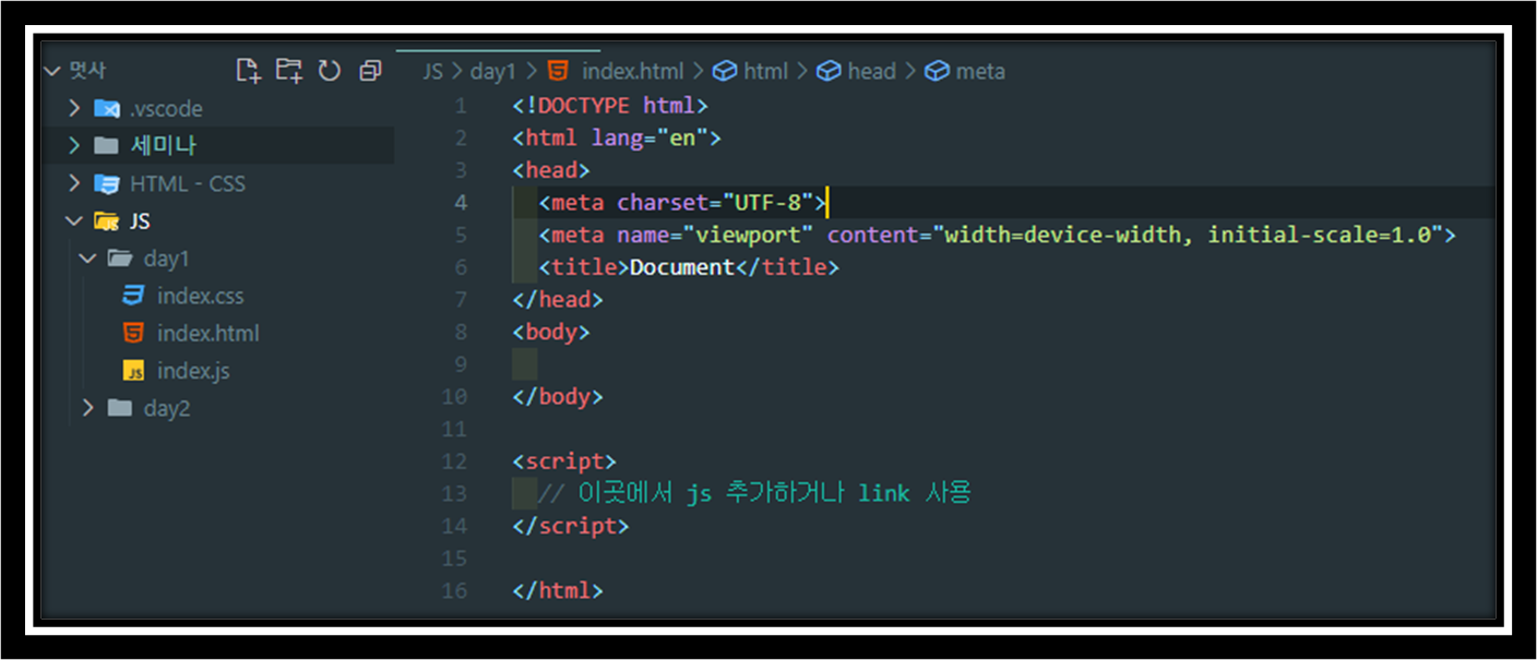 ▷ <style> css는 link를 적용해서 불러왔지만 <script> 는 src를 사용하여 불러온다.