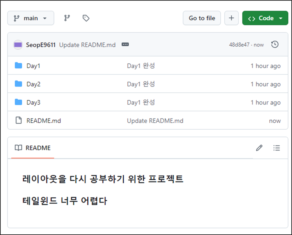 이제 리모트 레포지토리에 새로운 커밋이 추가 되었기 때문에