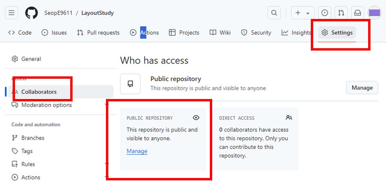 ▼ Settings - Collaborators 클릭