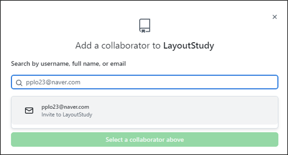 ▼ 초대 할 사용자의 이메일이나 깃허브닉네임 작성하면 자동으로 검색된다.