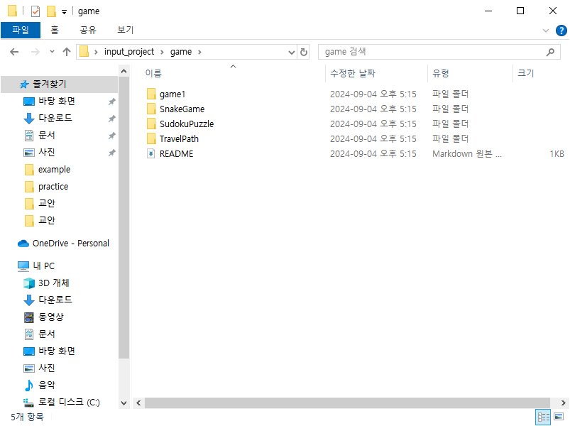 필자는 바탕화면에 input_project 파일을 저장소로 정하여 불러오겠다.