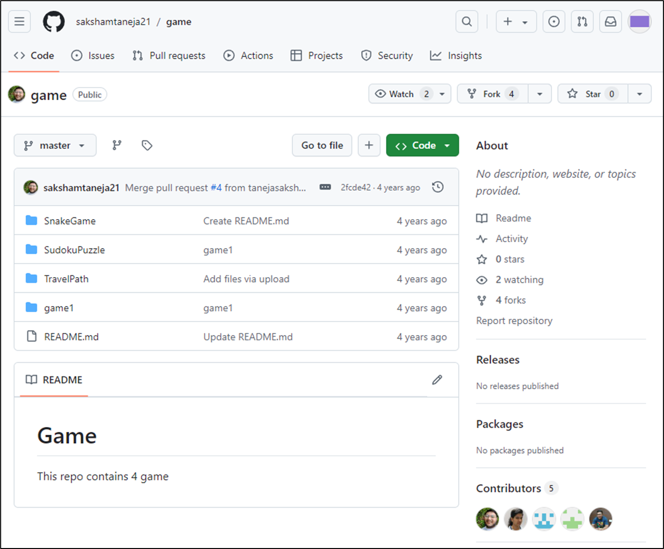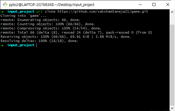 ▼ 실행 하면 game 레포지토리가 내 컴퓨터로 복사된다.