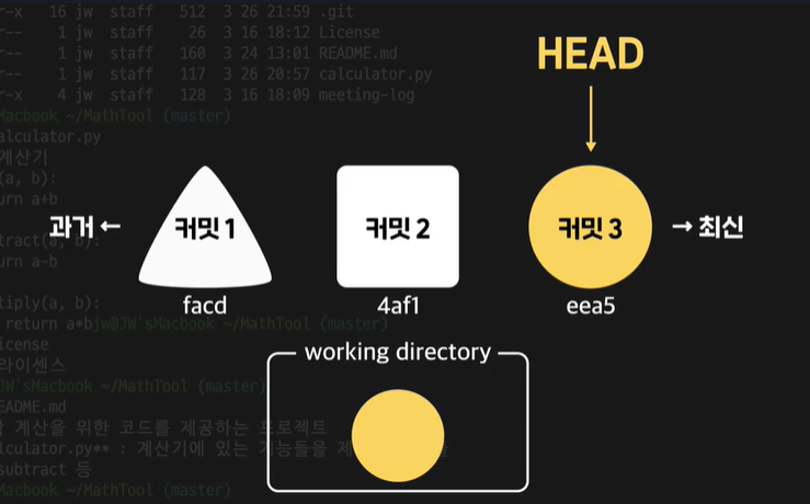 HEAD가 어떤 커밋을 가리키고 있는 존재고 HEAD가 가리키는 커미의 내용대로