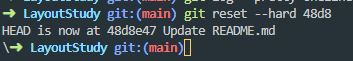 이 다음에 한칸 띄우고 --hard 옵션을 사용하며 herd 옵션은 reset과 함께 쓰는 옵션중 하나이다.