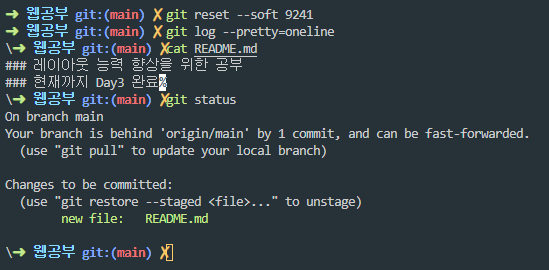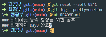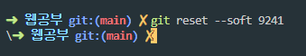 soft 옵션을 사용해서 커밋아이디 앞 4자리 bd92 커밋을 9241로 reset을 해보자