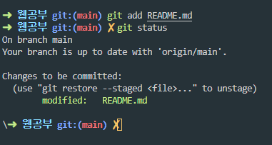 작성 후 터미널에서 git add READMD.md 실행