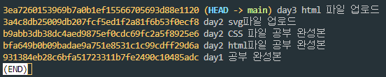 실행 전에 헤드 3ea7에서 메시지를 보면 day3 html 파일을 업로드 했었는데