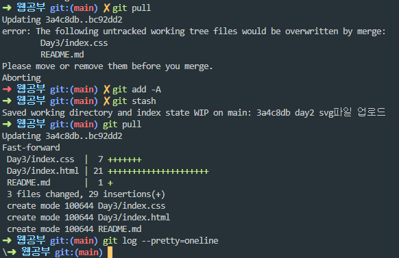 The following untracked working tree files would be overwritten by merge: 내 파일들