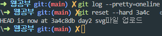 만약 헤드가 과거의 커밋을 가리키게 할 뿐만 아니라 커밋 이후로 워킹 디렉토리에서 했던 내용을 모두 없애고 싶을 때 hard 옵션을 쓰면된다.
