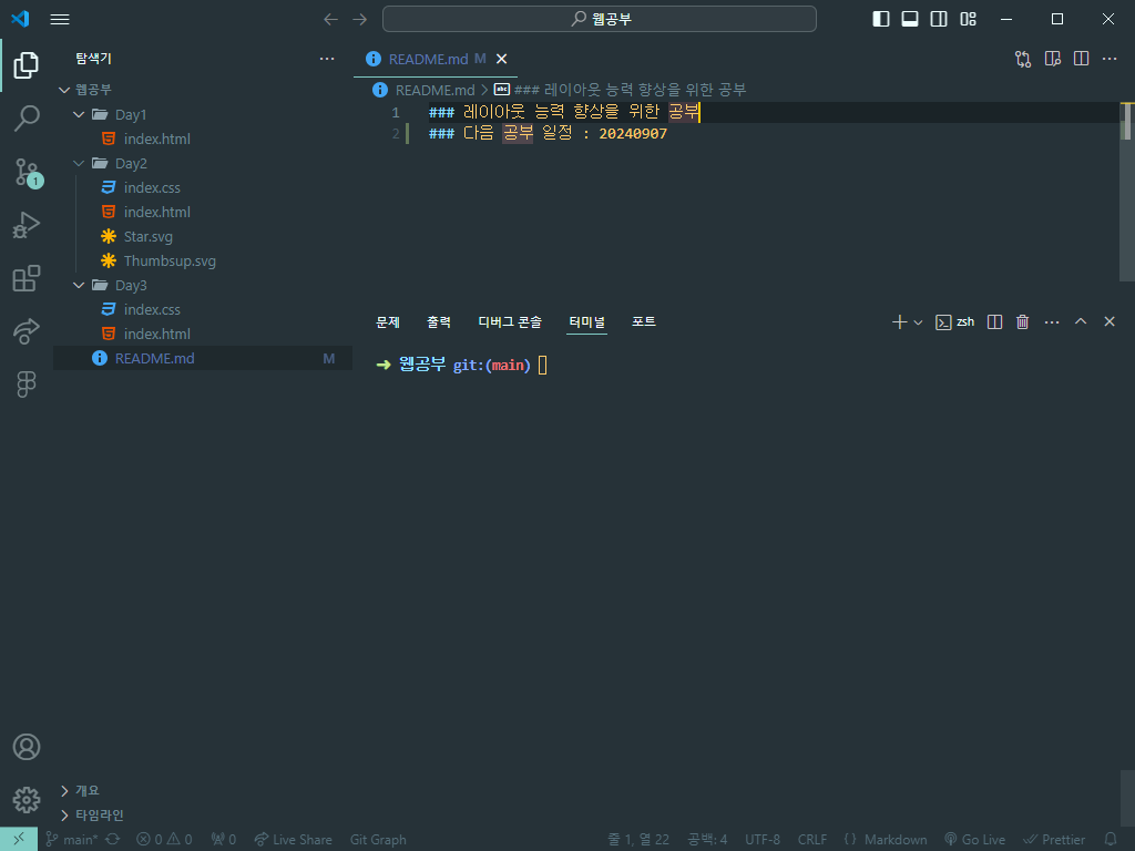 다시 main으로 돌아와서 작업을 진행해보자 'git checkout main'