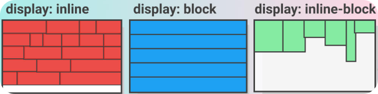 display block은 하나의 태그가 브라우저에서 좌우공간을 다 차지하면서 독립적인 덩어리 공간을 가지는 요소들이다. inline은 하나의 태그가 브라우저에서 실제로 코딩된 그 영역만 차지하여 좌우로 다른 태그가 나란히 위치할 수 있는 특징이있다.