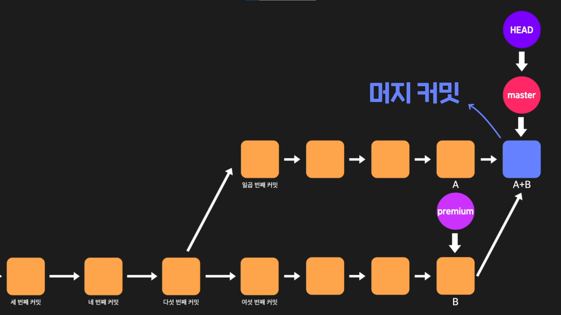 main branch가 가리키던 커밋의 내용에 premium branch가 가리키던 커밋의 내용을 합쳐서