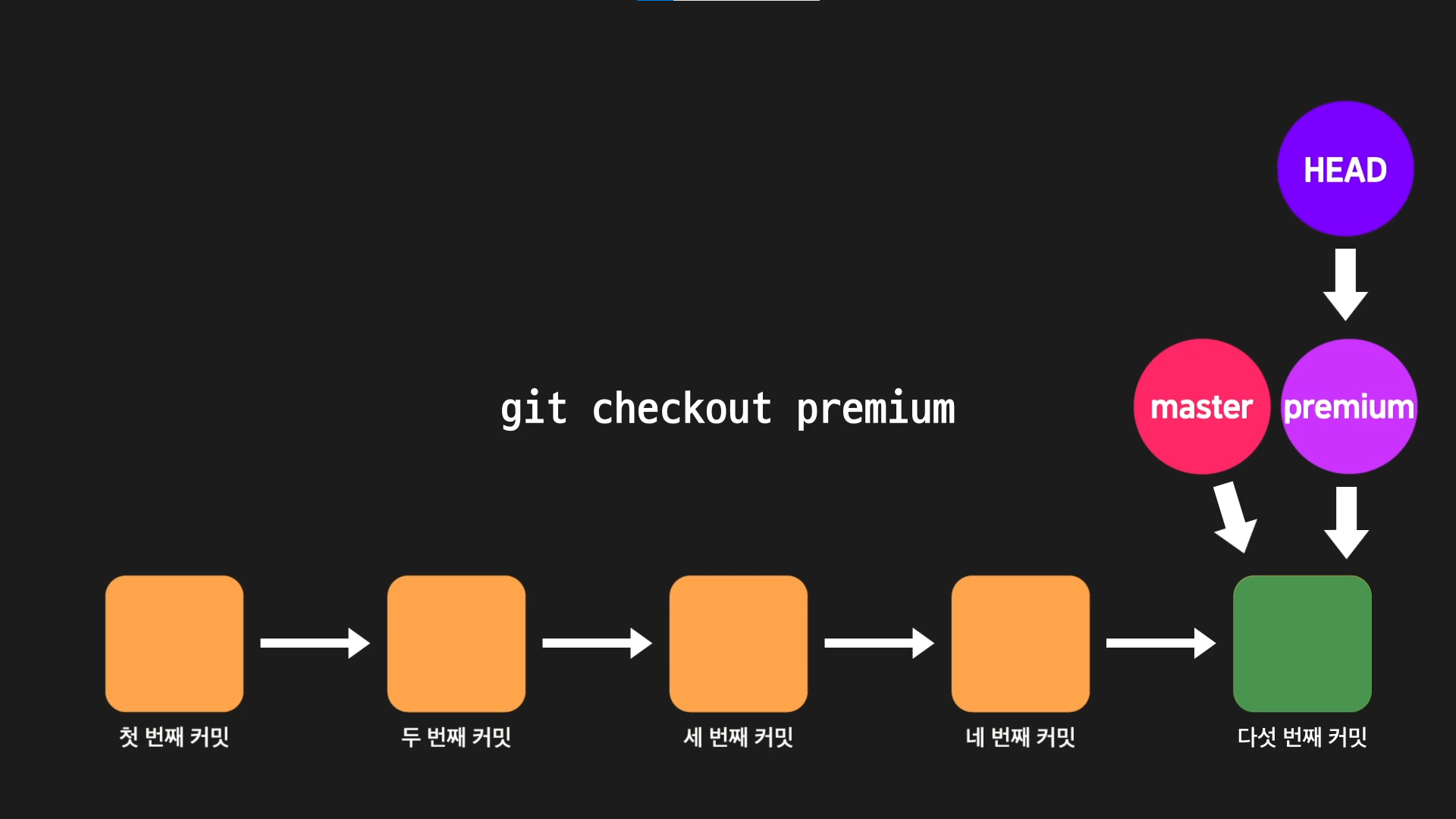 premium branch를 만들면 HEAD가 가리키던 커밋을 premium branch가 가리키게 된다.