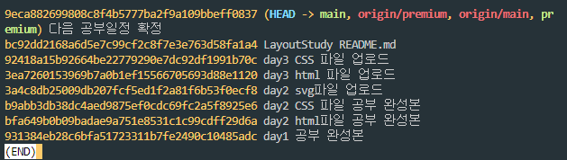 HEAD가 premium branch를 가리키는 것을 볼 수있다,
