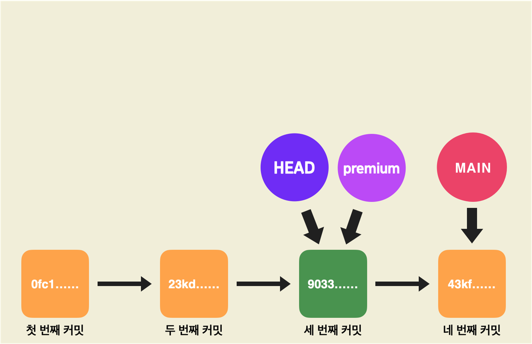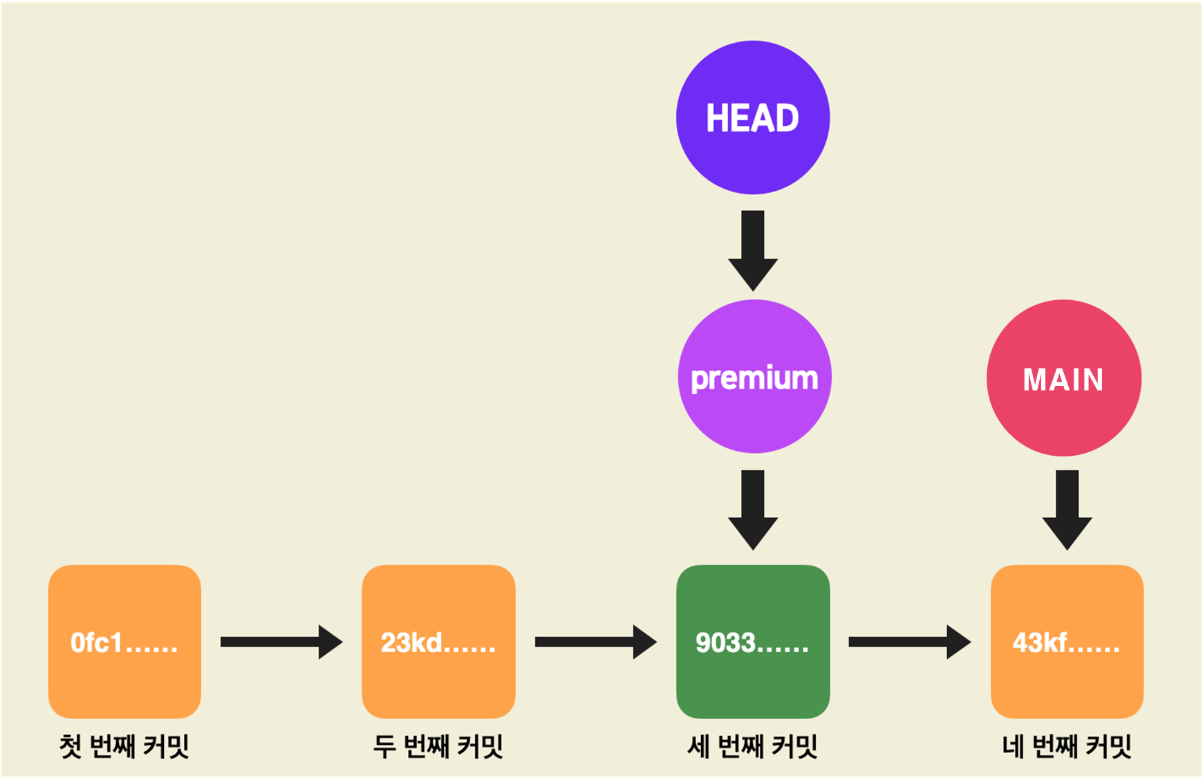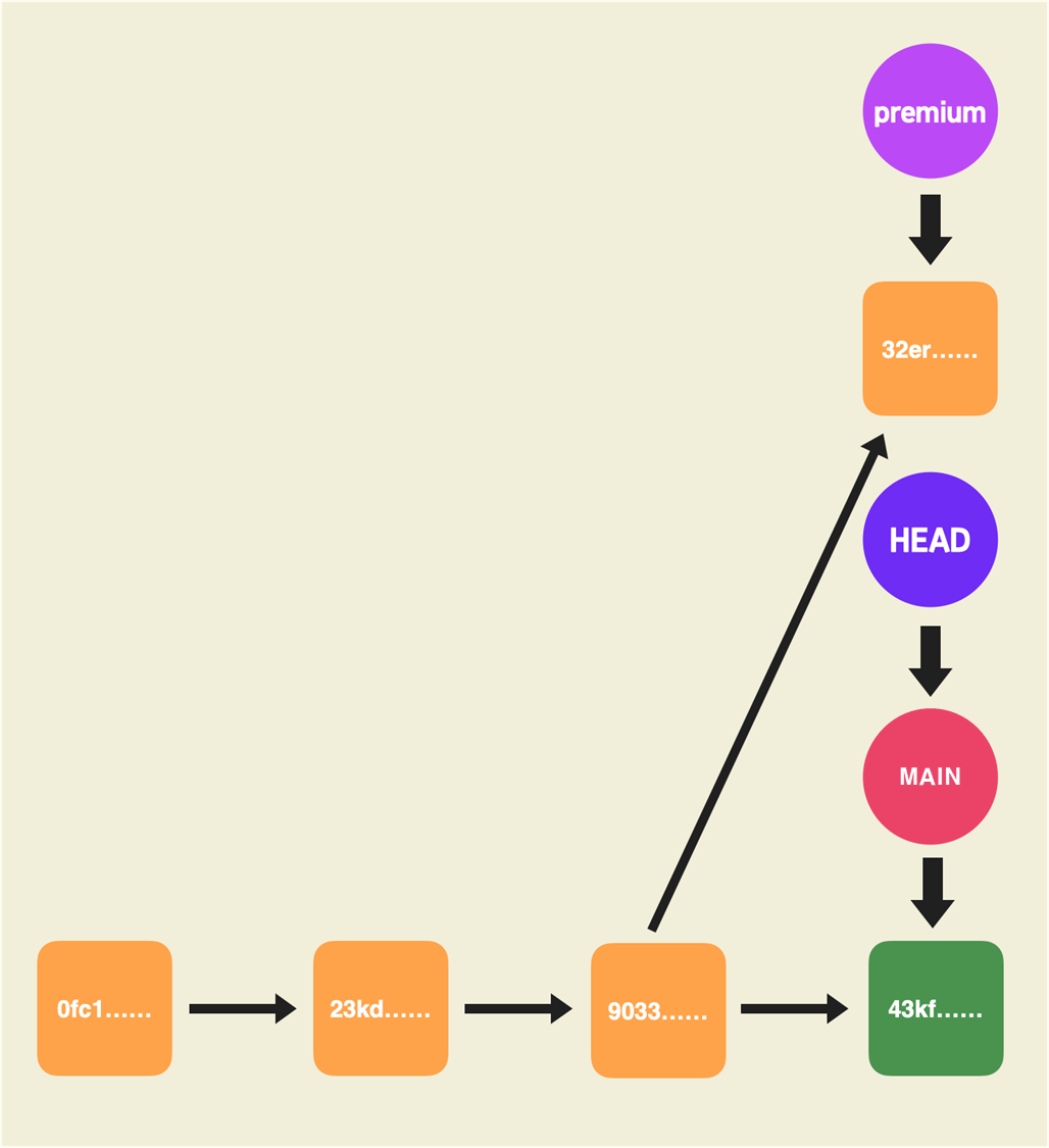 premium 브랜치는 HEAD가 가리키던 커밋을 똑같이 가리키게 된다.