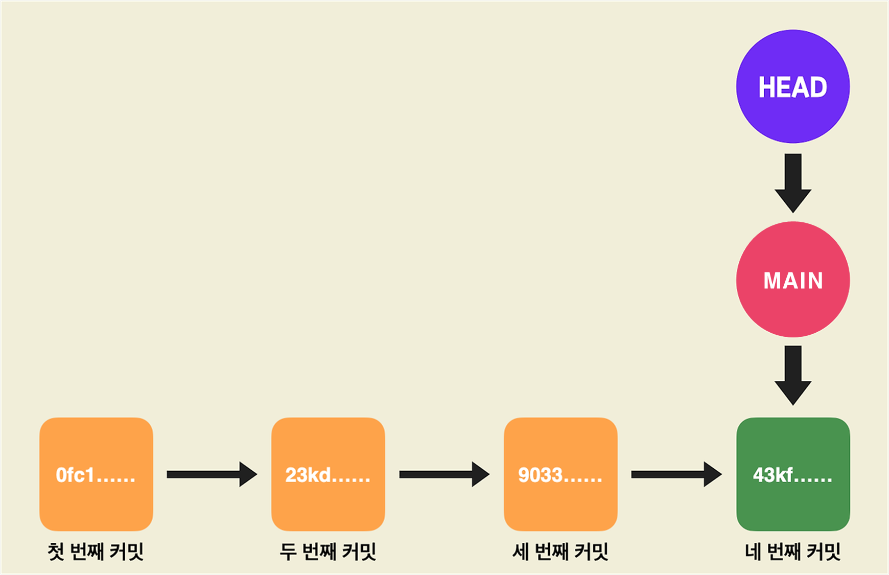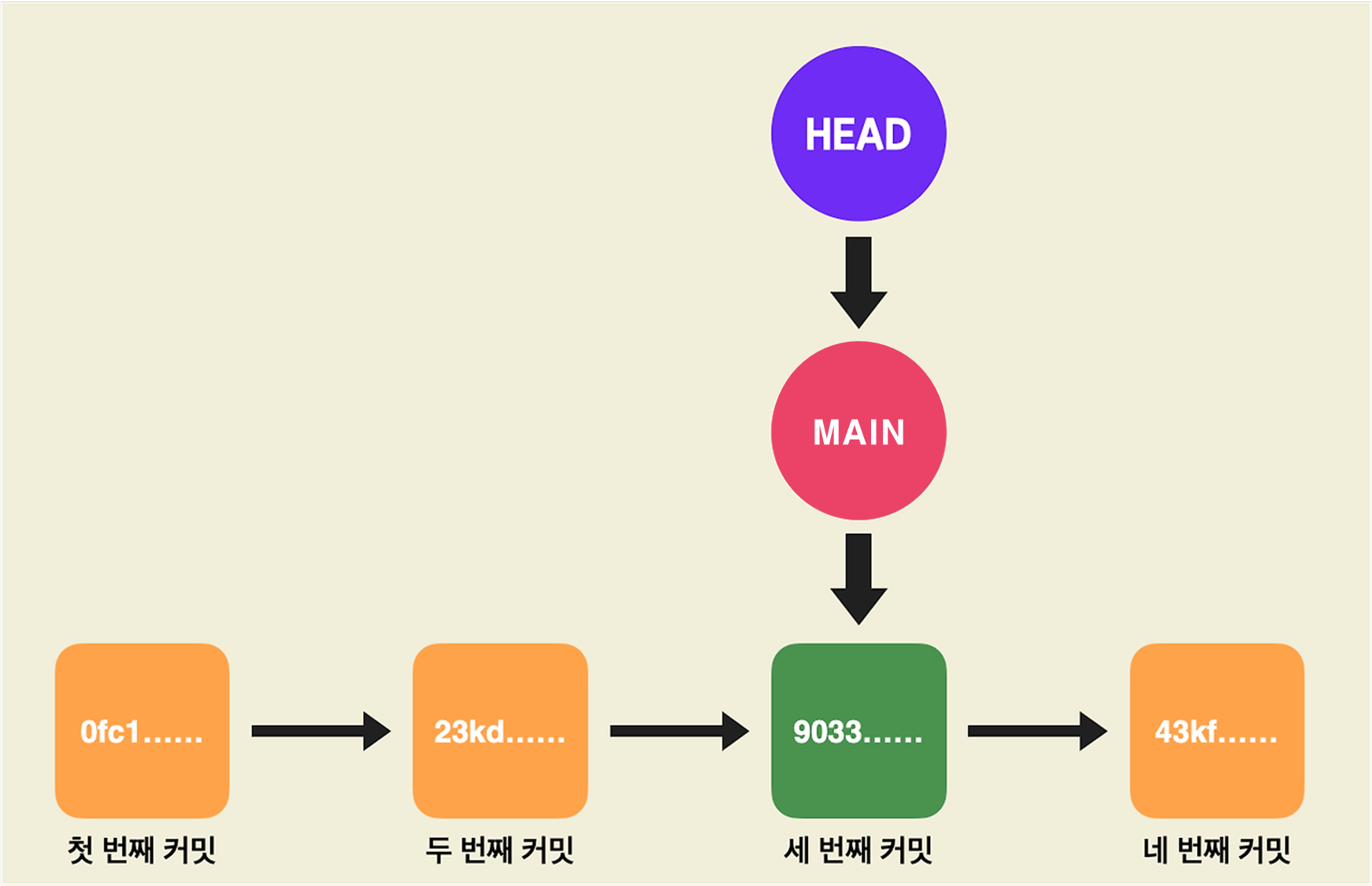 이렇게 HEAD가 main 브랜치를 가리키게 된다.