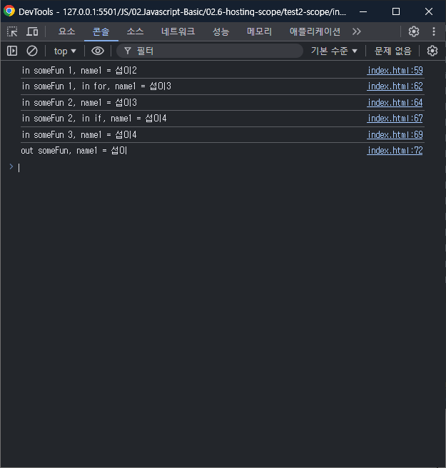 그렇기에 다른 스코프에 동일 이름으로 변수가 중복되었다고 하더라도