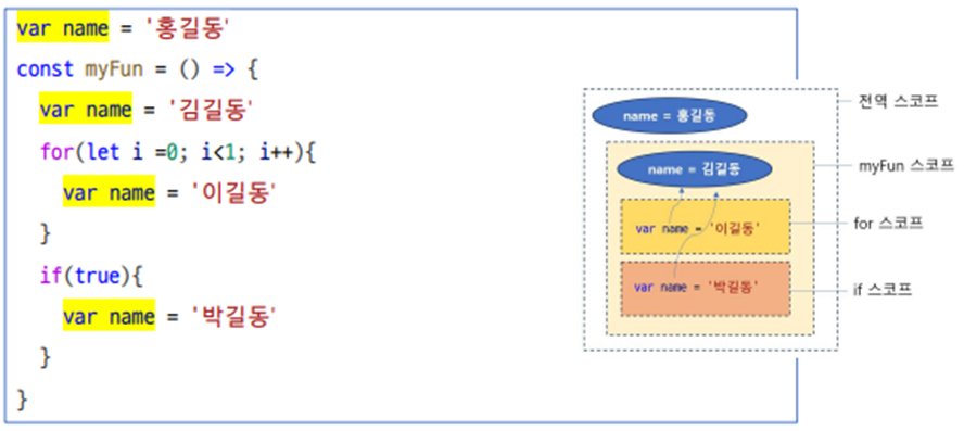 • 어떤 코드가 실행되는 영역을 스코프라고 하며 어떤 스코프에 선언된 변수는