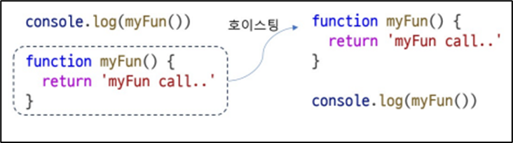 • 함수의 호이스팅은 함수 선언식에서 제공되며 표현식 함수는 호이스팅이 지원되지 않는다.