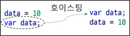 실행시에 아래에 작성한변수 선언 부분을 자동으로 위로 끌어올려서 에러 없이 코드가 진행되게 해주는 기법이다.