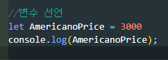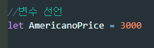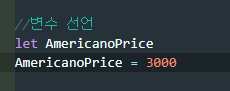 즉 오른쪽에 3000이라는 값을 아메리카노 변수이름에 저장한다는 의미로 볼 수있다.