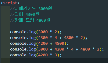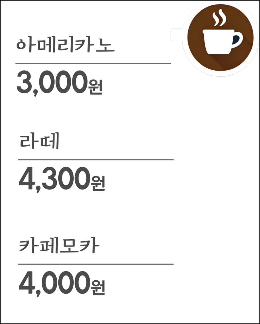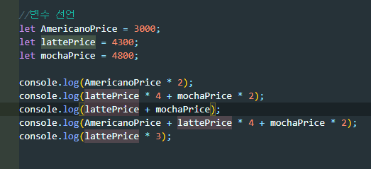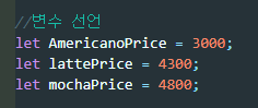 마찬가지로 나머지 커피들도 변수를 한번 만들어보자