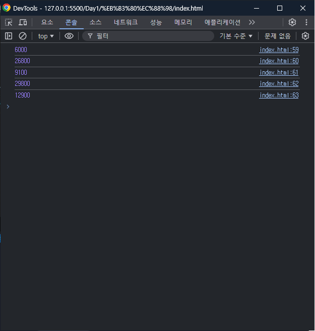 주석처리했던 콘솔에 각 금액에 맞는 변수들로 바꿔주자