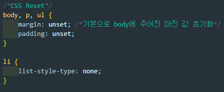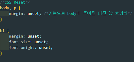 margin : unset ; /* 기본으로 body에 주어진 마진 값 초기화 */