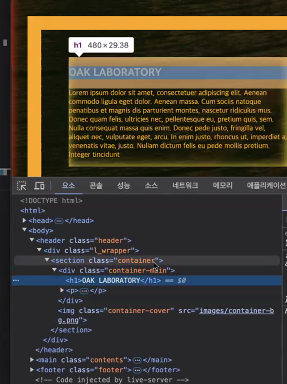 header에 이미지를내부 노란 테두리 박스 만들기위해 header의 l_wrapper내부에 container 클래스를 작성한다.