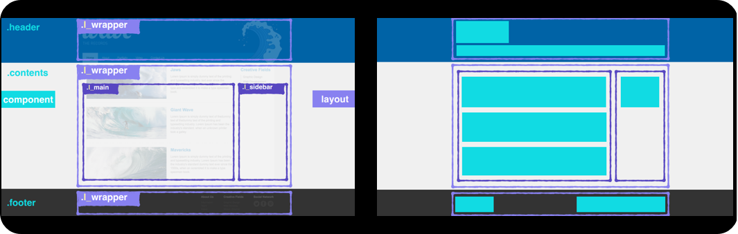 header의.l_wrapper 에는 2개의 레이아웃과 contents의 l_wrapper에 두개의 레이아웃, 또 l_main에는 세개의 레이아웃등으로 구성할 수있다.