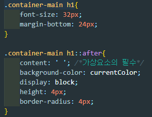 가상요소를 사용하여 h1의 글씨 밑줄을 추가해줘야하는데