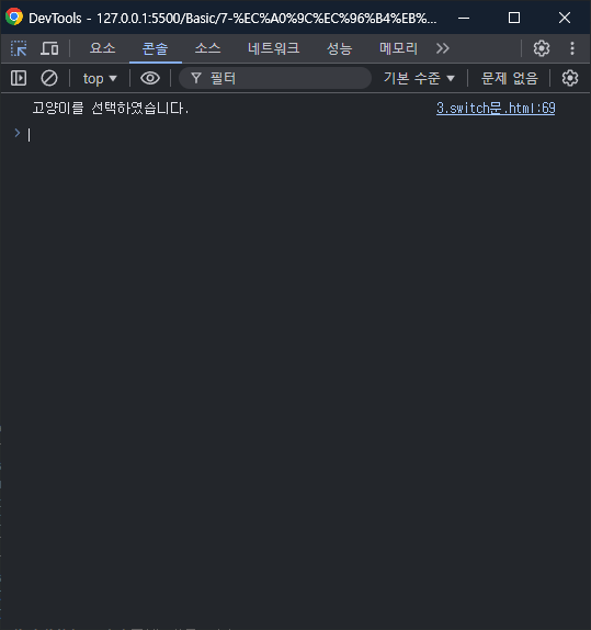 console.log('고양이를 선택하였습니다.');